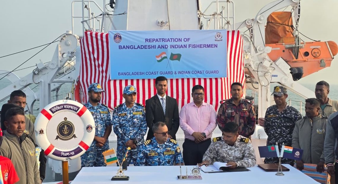 In the Bay of Bengal, on the International Maritime Boundary Line, the Bangladesh Coast Guard received 32 Bangladeshi fishermen from the Indian Coast Guard and handed over 47 Indian fishermen to them.