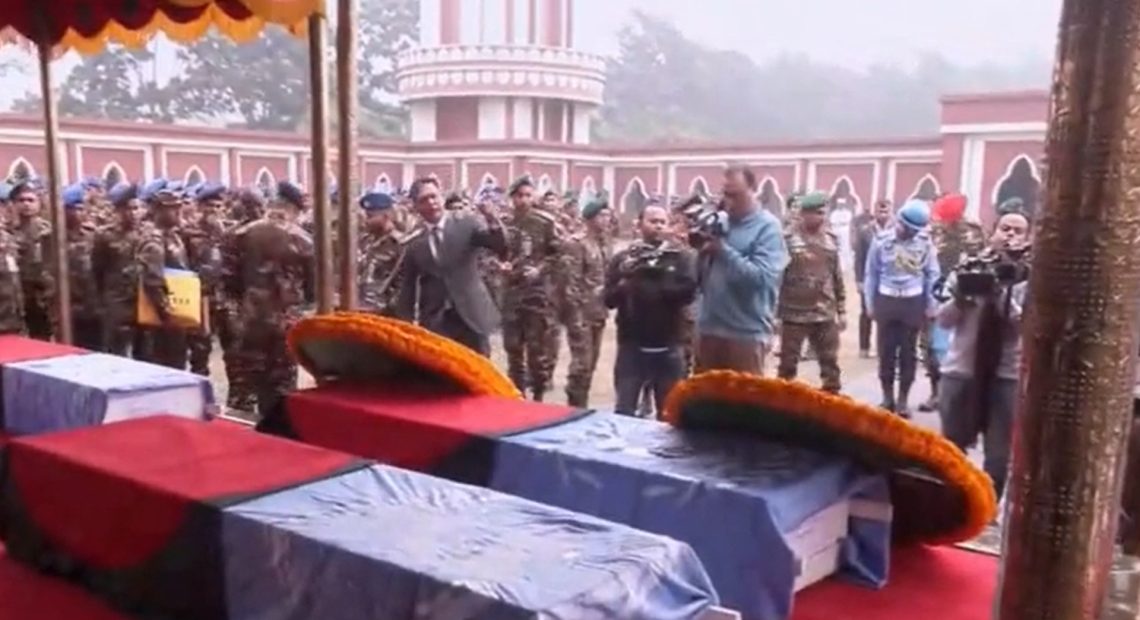 The slain peacekeepers are Corporal Md. Masud Rana from Natore, Soldier Md. Mominul Islam and Soldier Shanto Mondal from Kurigram, Soldier Shamim Reza from Rajbari, Mess Waiter Md. Jahangir Alam from Kishoreganj, and Laundry Worker Md. Shobuj Mia from Gaibandha.